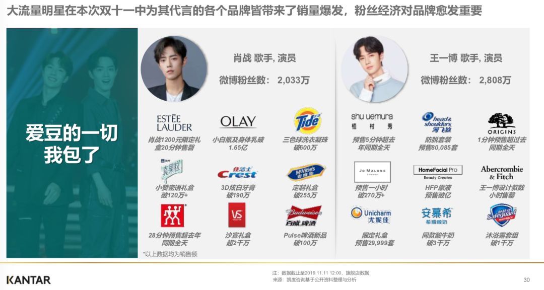 2019年这些品牌方的成功必将在2020年引来更多的追随者,但流量明星几乎每年一换,品牌方如何踩准正确节奏,挖掘潜力股,做好双11的预热,2020年会是严峻的考验。